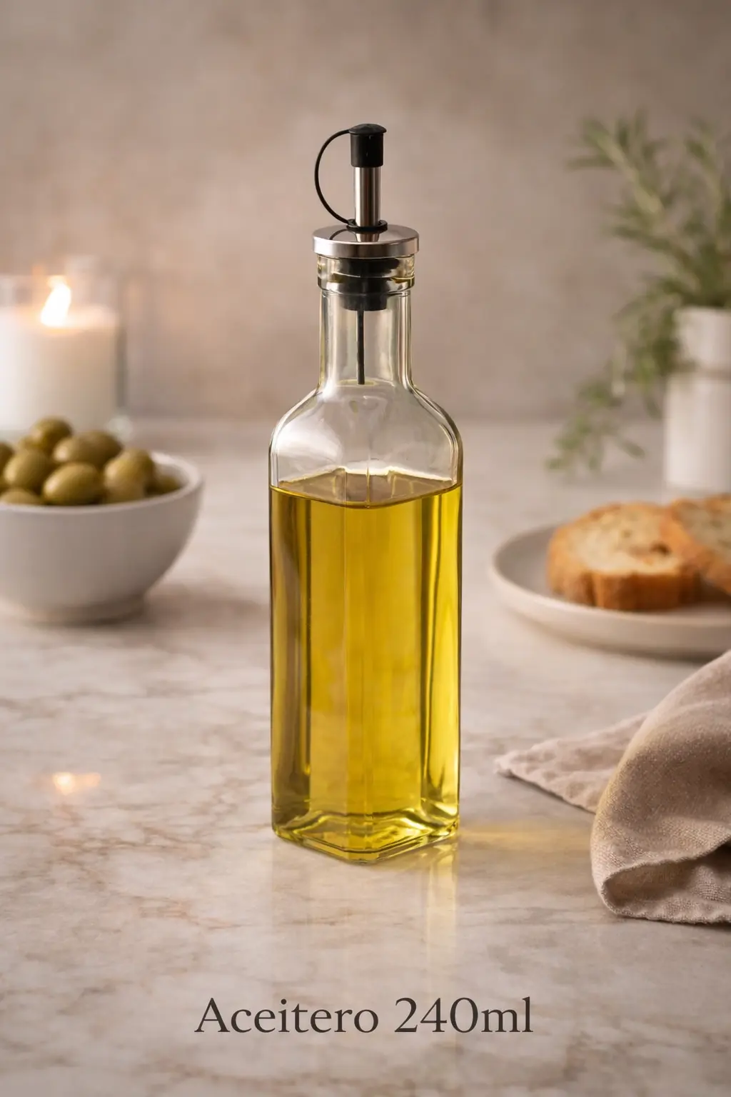 Sumá estilo y funcionalidad a tu cocina con este aceitero de vidrio con pico dosificador , ideal para tener siempre a mano aceite de oliva, vinagre o aderezos.