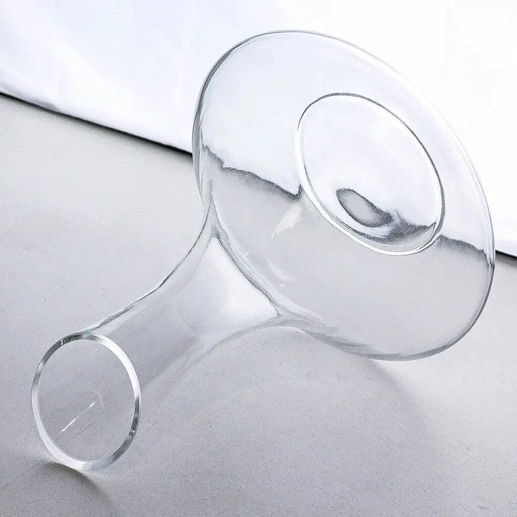 La base amplia favorece el contacto del vino con el aire, mientras que su cuello curvo facilita un vertido cómodo y preciso.
