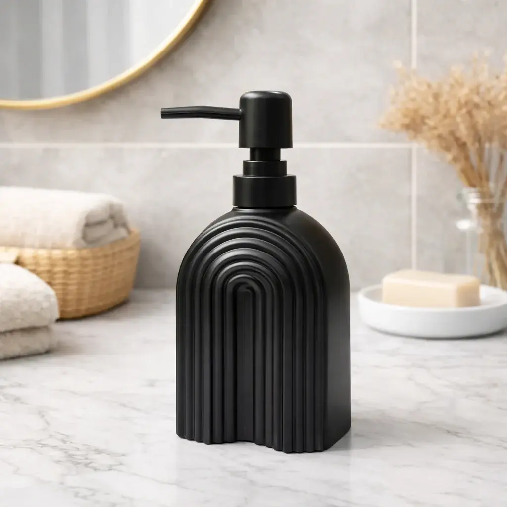 El Dispenser Mate Line Black se destaca por su relieve vertical elegante que crea un efecto visual limpio, moderno y equilibrado. Su acabado negro mate aporta sofisticación y convierte un accesorio cotidiano en una pieza decorativa con identidad.