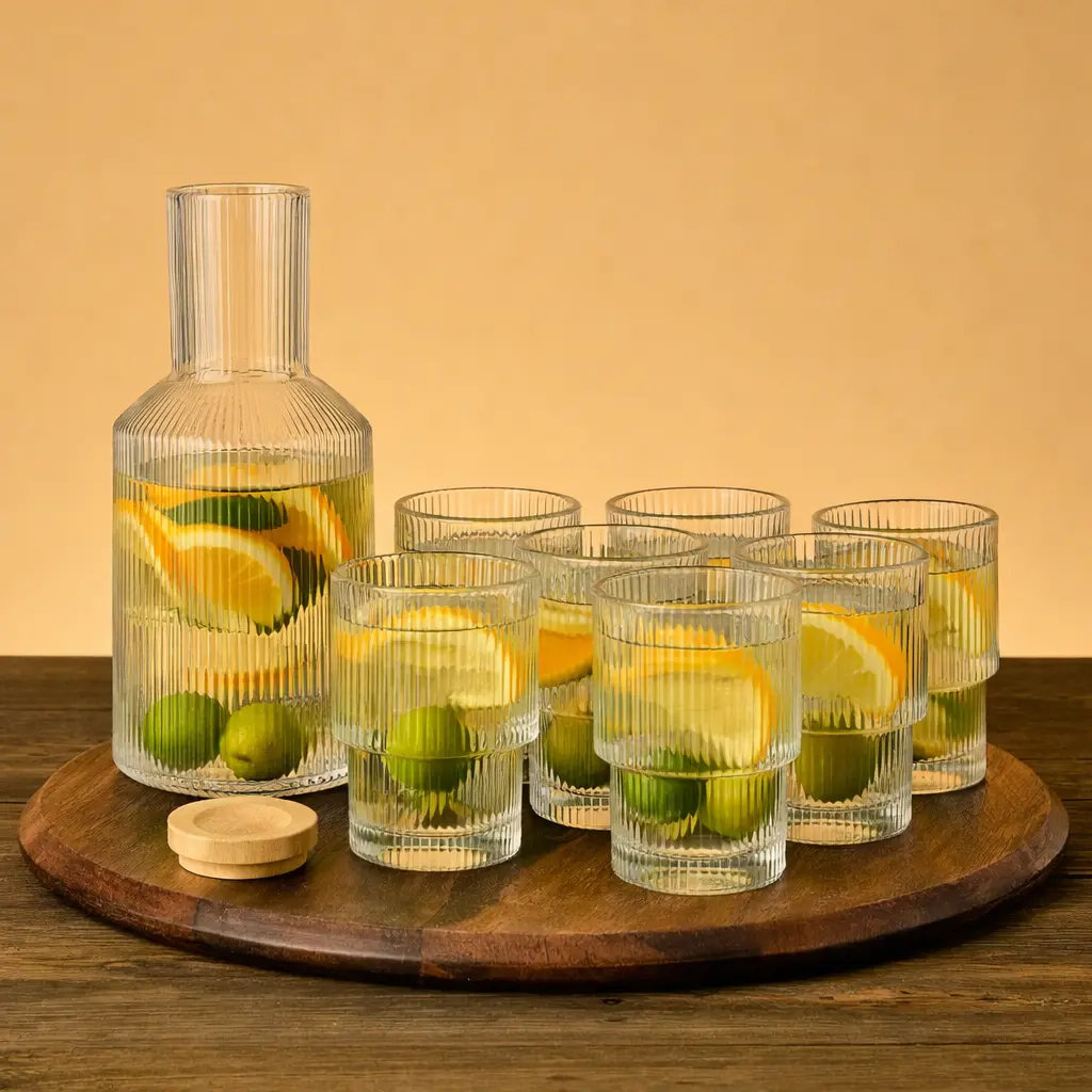 Hermoso set de botella con 6 vasos, ideal para serivir vino, limonadas o lo que quieras.